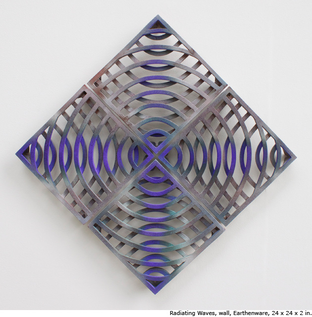 My earthenware tiles are constructed from cut slabs of clay, and sprayed with dry matte glazes.